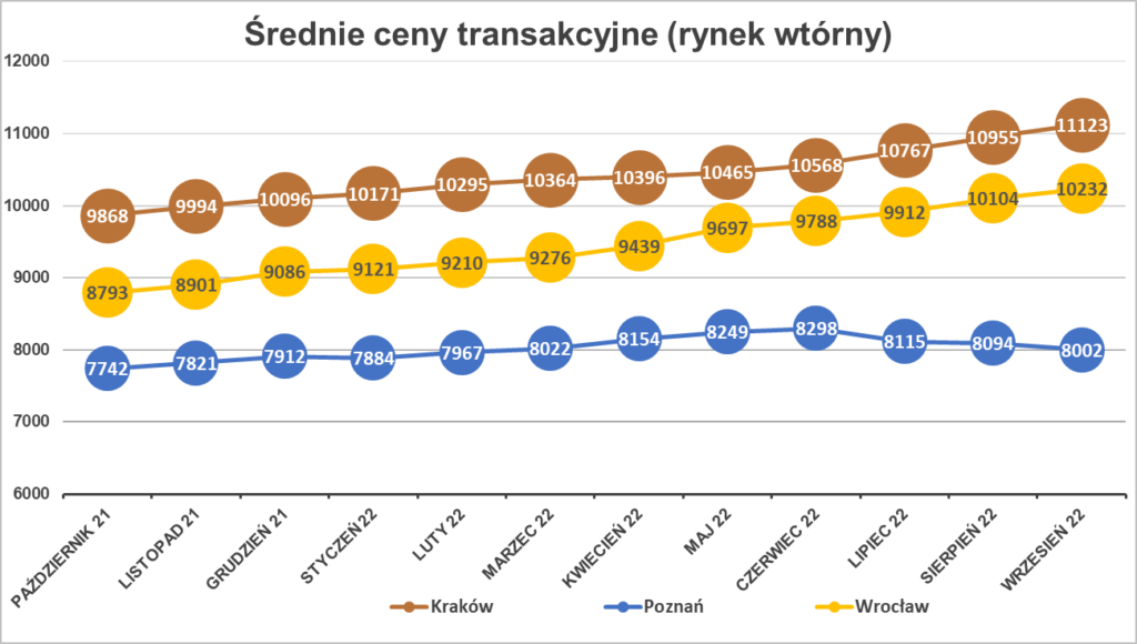 Analizowaliśmy już zmiany cen transakcyjnych na największym rynku nieruchomości – w Warszawie. Przyjrzyjmy się jak to wygląda obecnie w 3 innych, dużych miastach – w Krakowie, Poznaniu i we Wrocławiu.