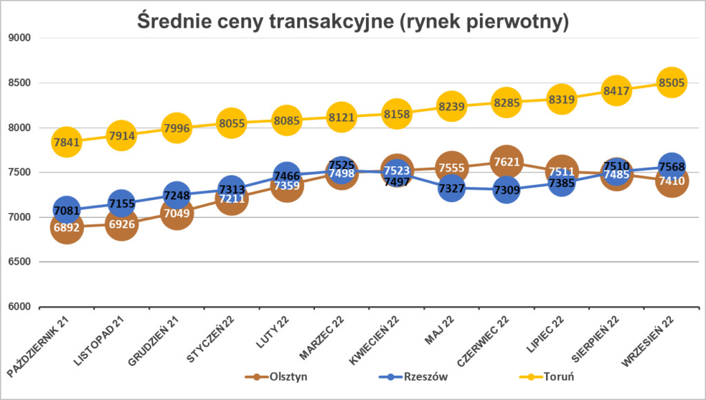 Kolejnymi miastami w których prześledzimy trendy zmiany cen na rynku nieruchomości to: Olsztyn, Rzeszów i Toruń.